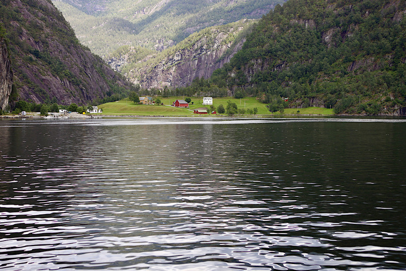 verzweigte Welt mit Seitenarmen und neuen Fjorden, vorbei an einer mittelalterlichen Kapelle und stattlichen Häusern. Immer wieder erklärt der Kapitän wo man ist und was man sehen kann. Teilweise sind die Seitenarme des Fjordes so eng, dass man sich fragt wie man mit einem Schiff hier durchfahren kann. Vorbei geht es an schroffen Felsen, lieblichen Gehöften und beeindruckenden Szenerien. Oftmals hat man das Gefühl im "Troll-Land" zu sein, doch leider sieht man sie nur nachts. Wird ein Troll von einem Sonnenstrahl erwischt wird er zu Stein. Wenn man die Fotos genau anschaut könnte es sein, dass man welche sieht. Wir auf jeden Fall waren überzeugt welche gesehen zu haben.